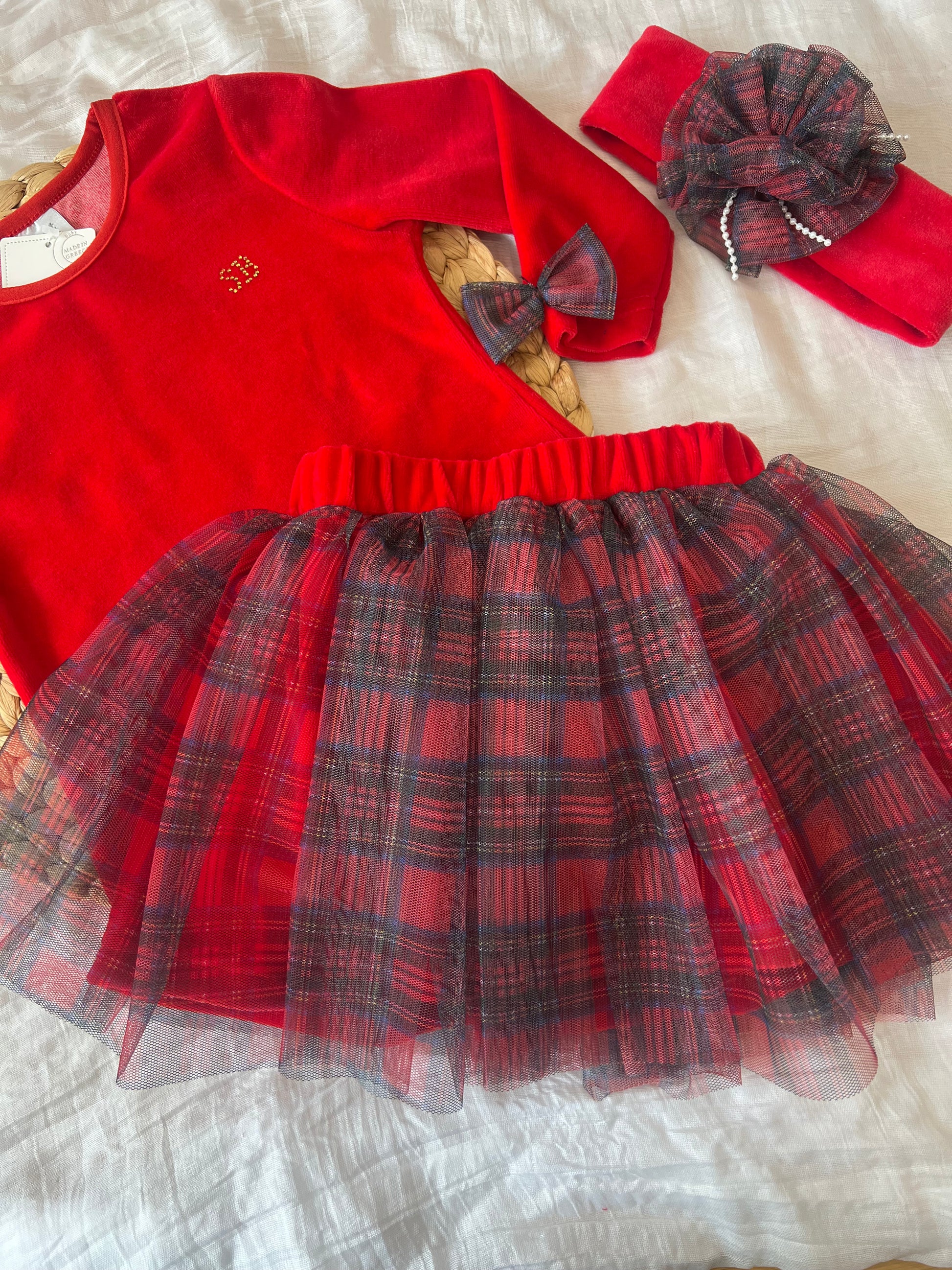 CHRISTMAS SET.ΣΕΤ ΒΕΛΟΥΔΙΝΟ ΜΠΛΟΥΖΑ ΜΕ ΤΟΥΛΙΝΗ ΦΟΥΣΤΑ . Η κορδέλα δεν συμπεριλαμβάνεται.