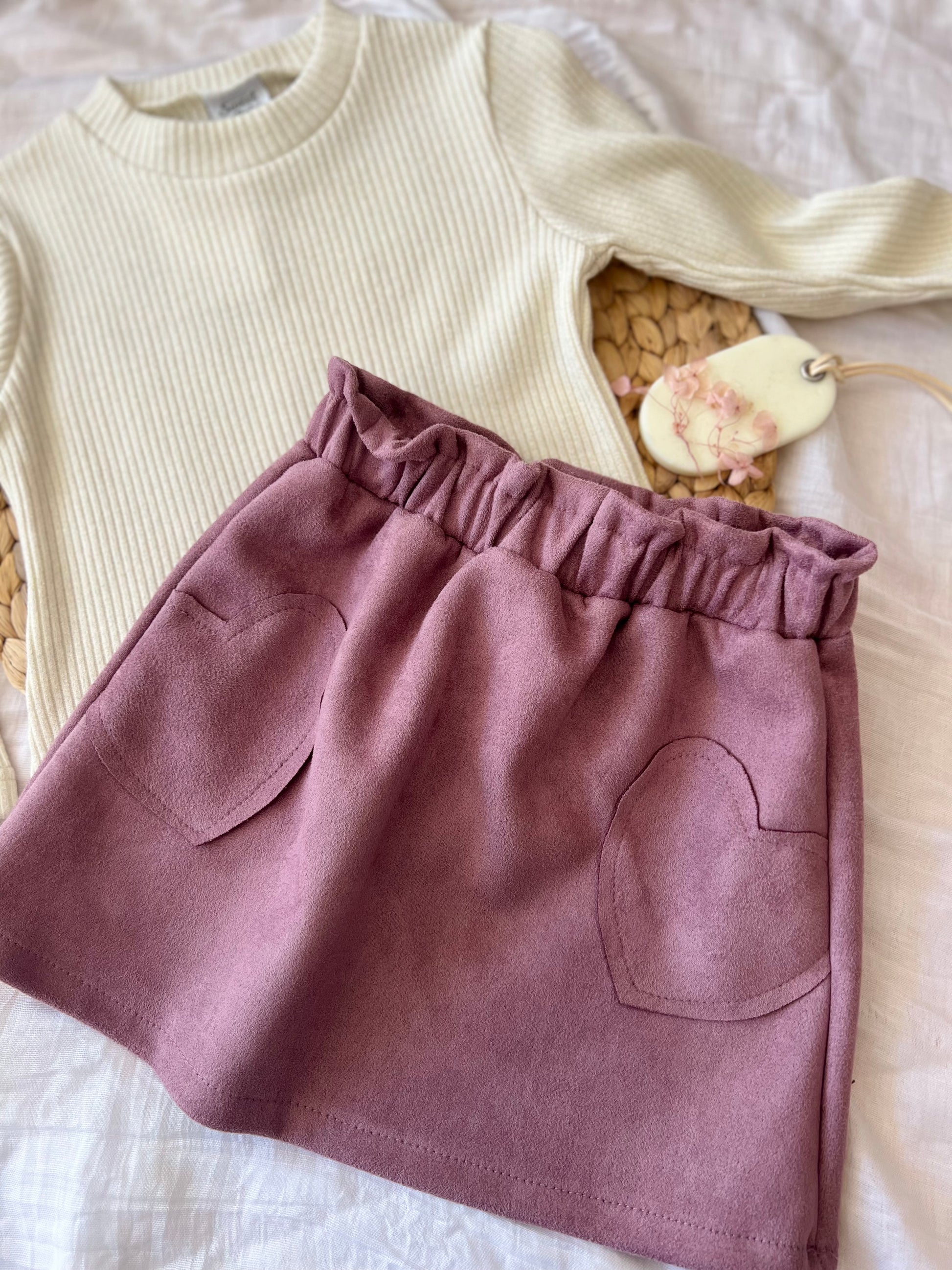 Σετ  με ριπ μπλούζα  με χρυσοκλωστή και σουέτ φούστα . Made in Greece