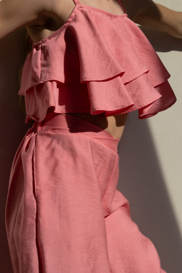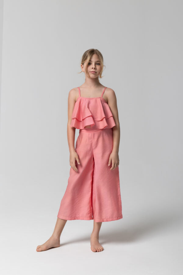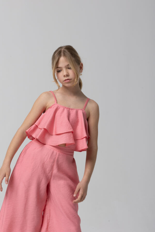 Σύνολο με τοπ μπλουζάκι με βολάν και λεπτές ρυθμιζόμενες τιράντες.