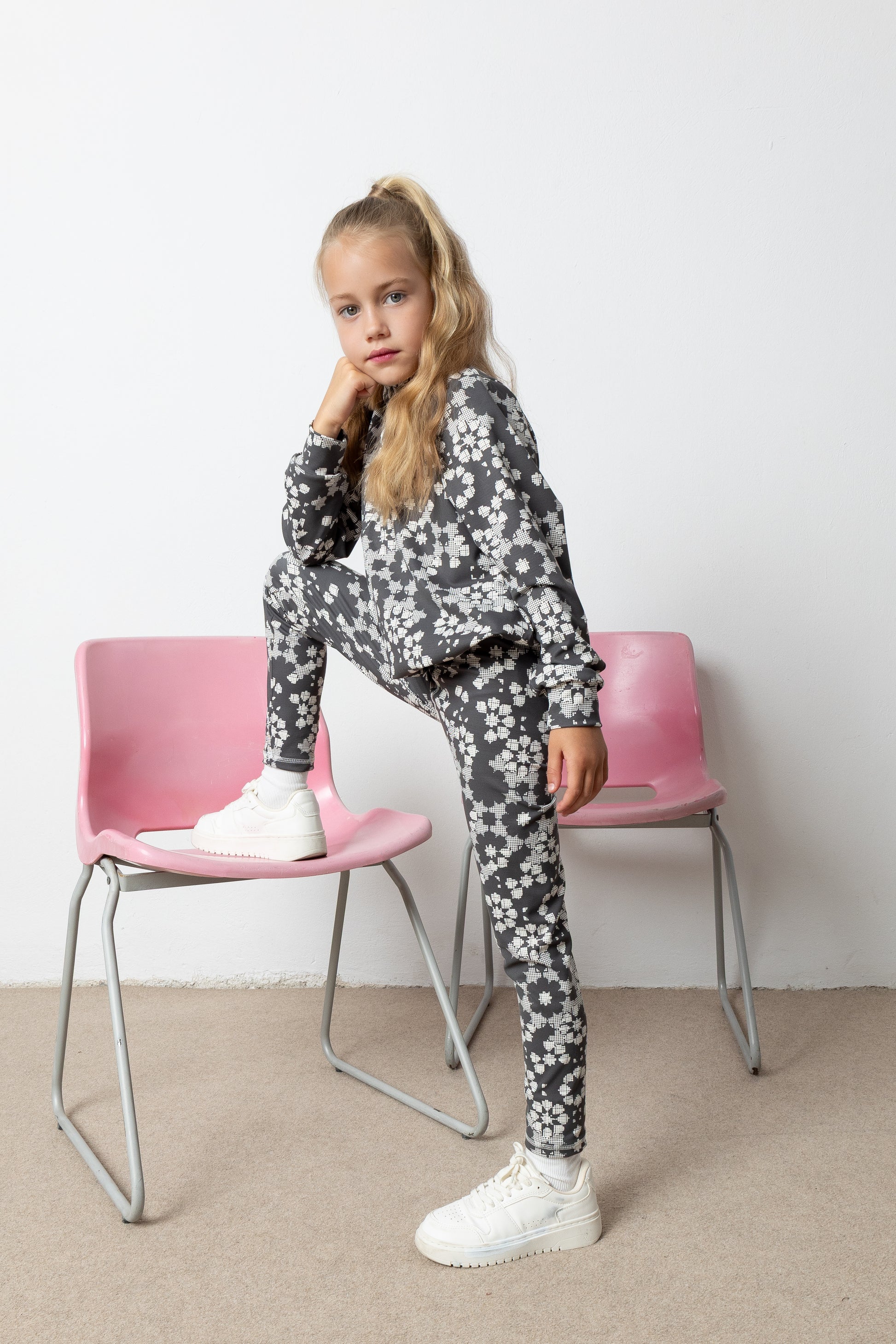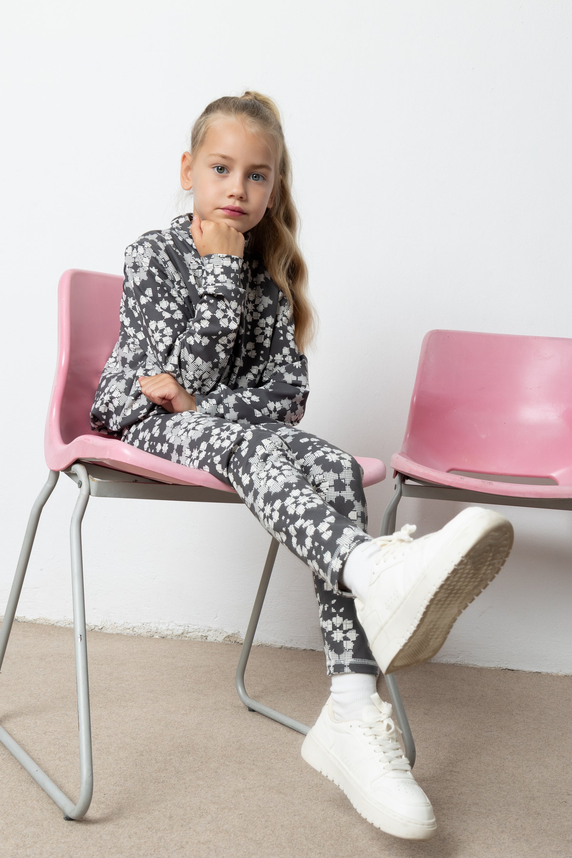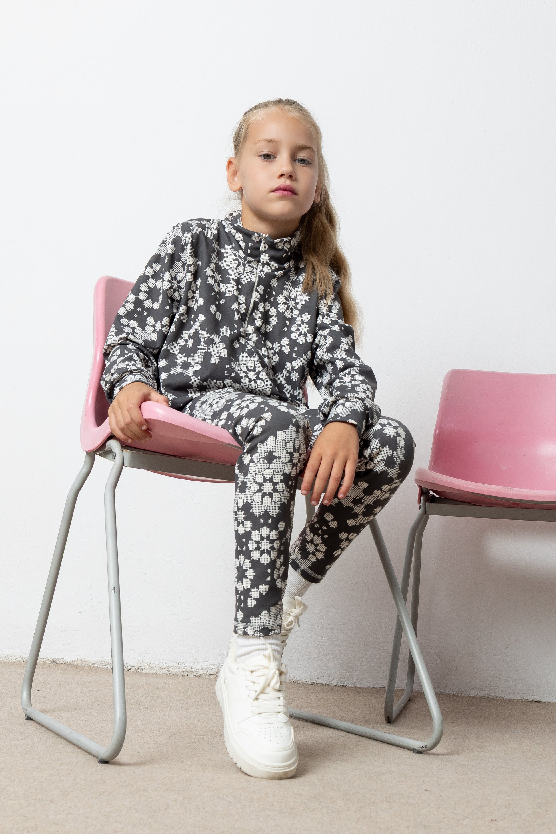 Άνετο σετ που αποτελείται από μπλούζα με φερμουάρ και κολάν, κατασκευασμένο από μαλακό, ελαστικό ύφασμα για καθημερινή χρήση. Διαθέτει all-over print με μοντέρνο γεωμετρικό μοτίβο και προσφέρει πλήρη ελευθερία κινήσεων. Η μπλούζα εχει φερμουάρ στο μπροστινό μέρος και ελαφρώς φαρδιά γραμμή που καταλήγει balloon, ενώ το κολάν εφαρμόζει τέλεια χωρίς να πιέζει.