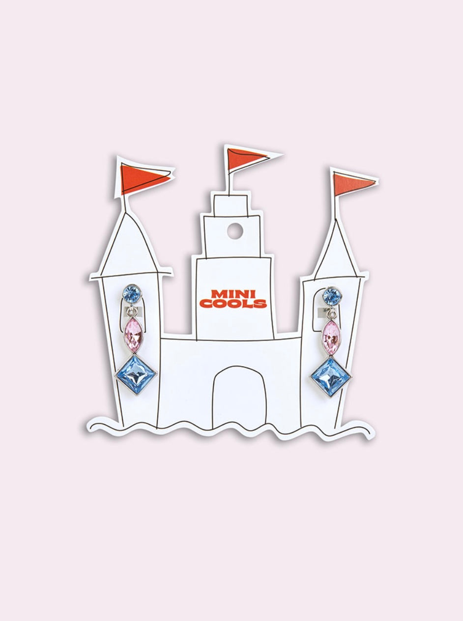 Blue and pink gems clip-on earrings, with extra soft plastic protection on the clasp to keep ear lobes soft. No piercing needed.