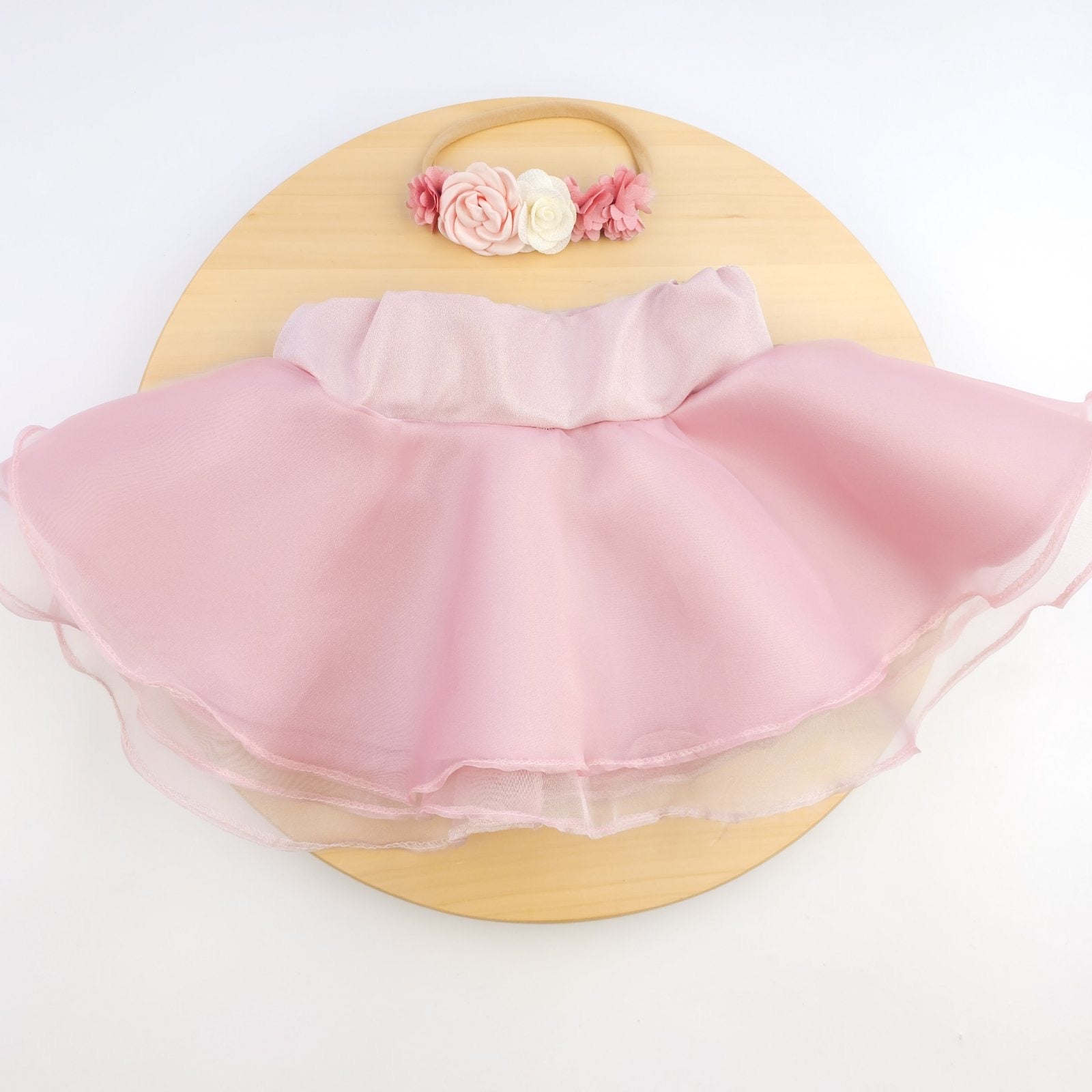Χειροποίητο σετ ρούχων , αποτελείται απο κορμάκι φούστα απο οργάτζα και κορδέλα.