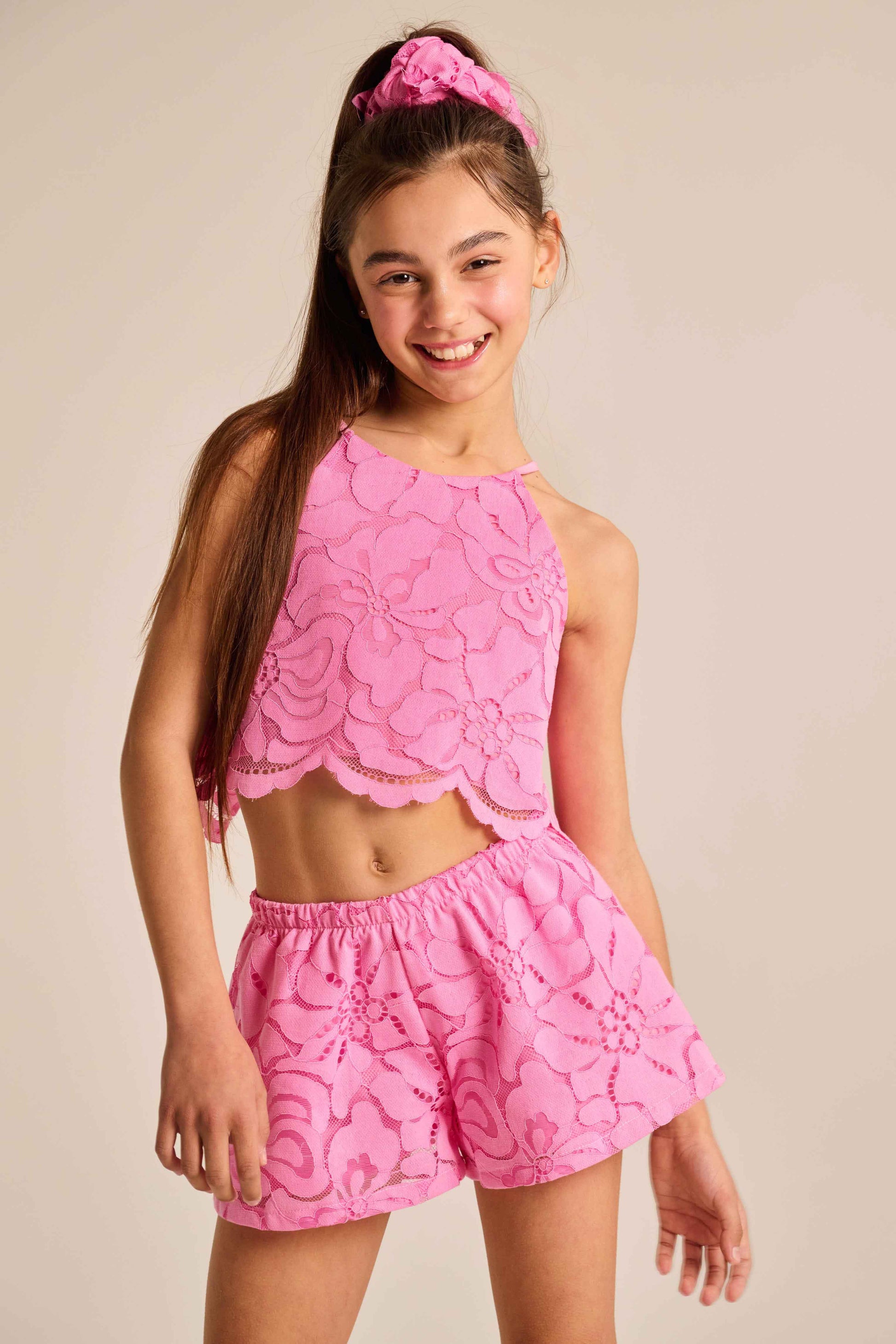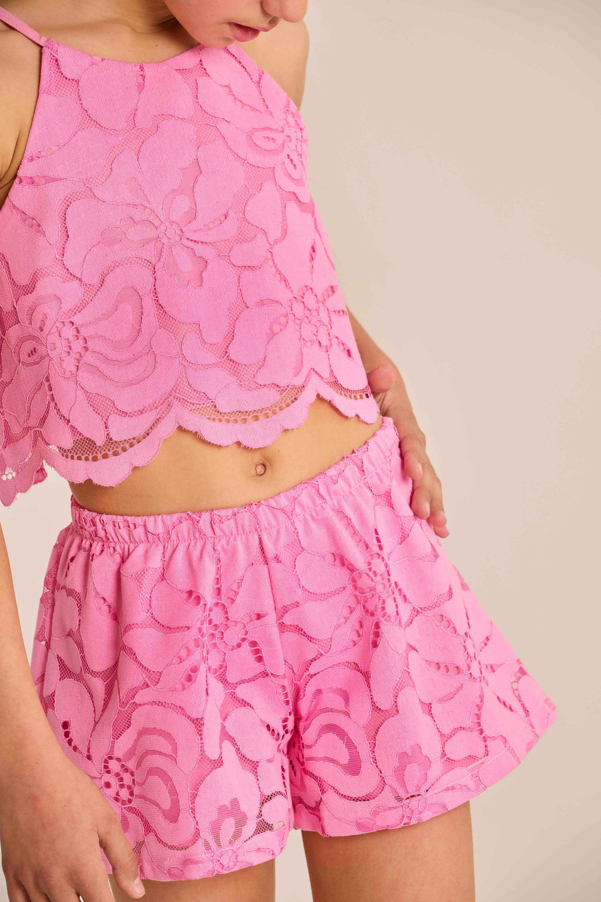 Melin Rose Σετ μπλούζα με σορτς σε ύφασμα δαντελά Ροζ 2-12Y