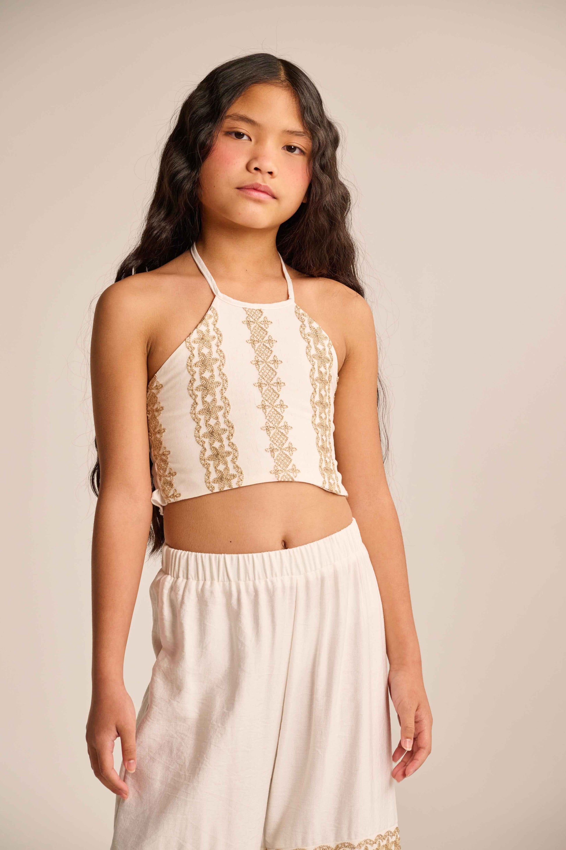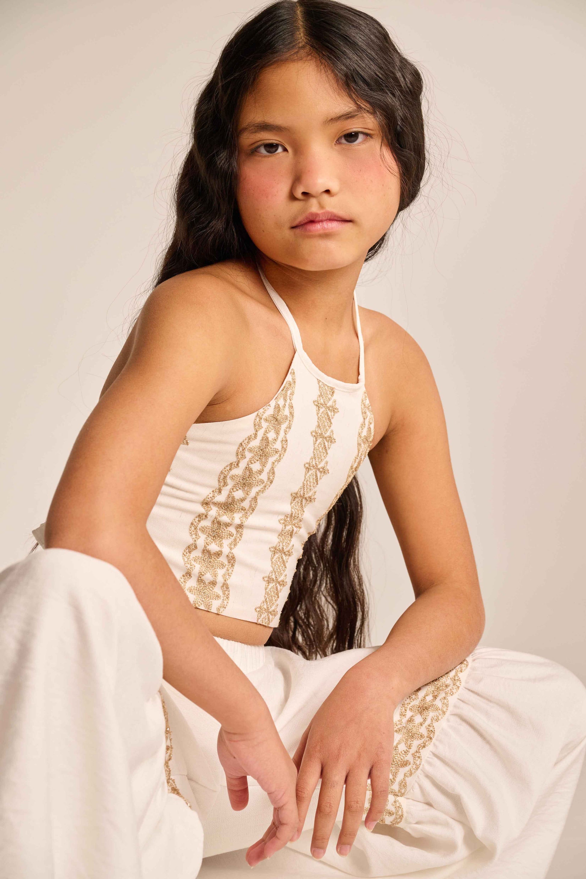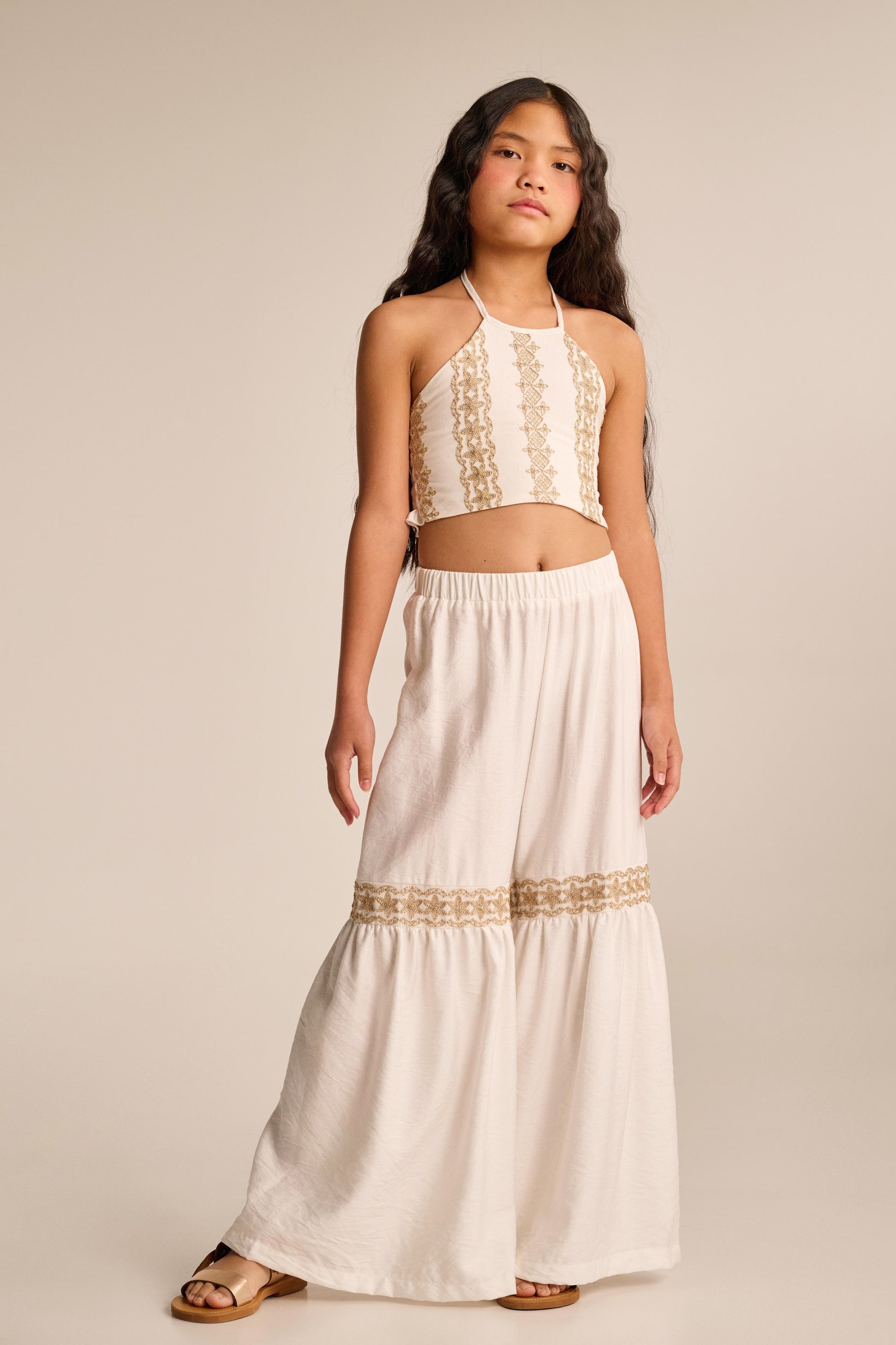 Melin Rose Σετ τοπ με χρυσό κέντημα και παντελόνα με σούρες 8-14Y