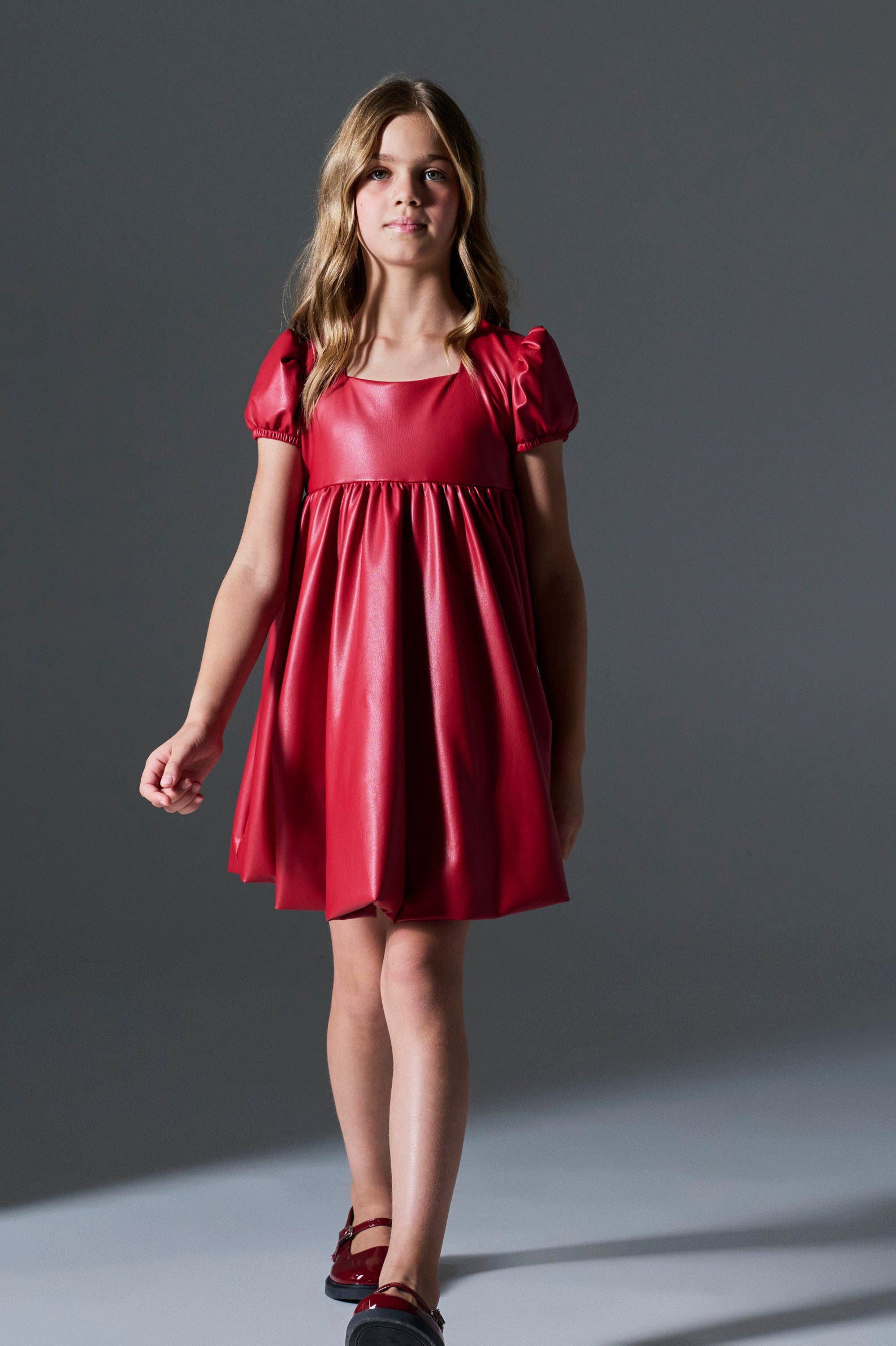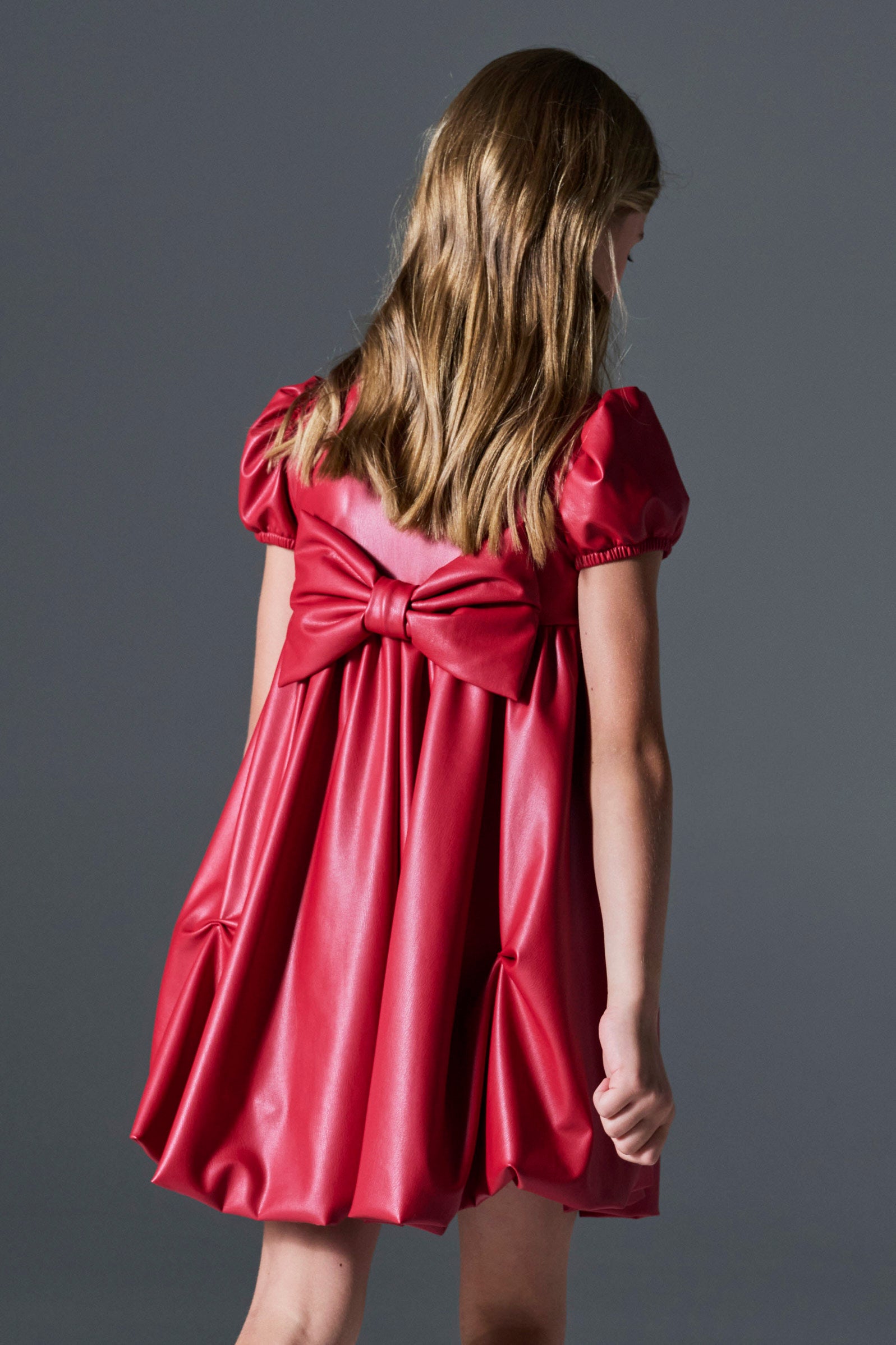 Melin Rose Φόρεμα δερματίνη κόκκινο με φιόγκο 4-12Υ